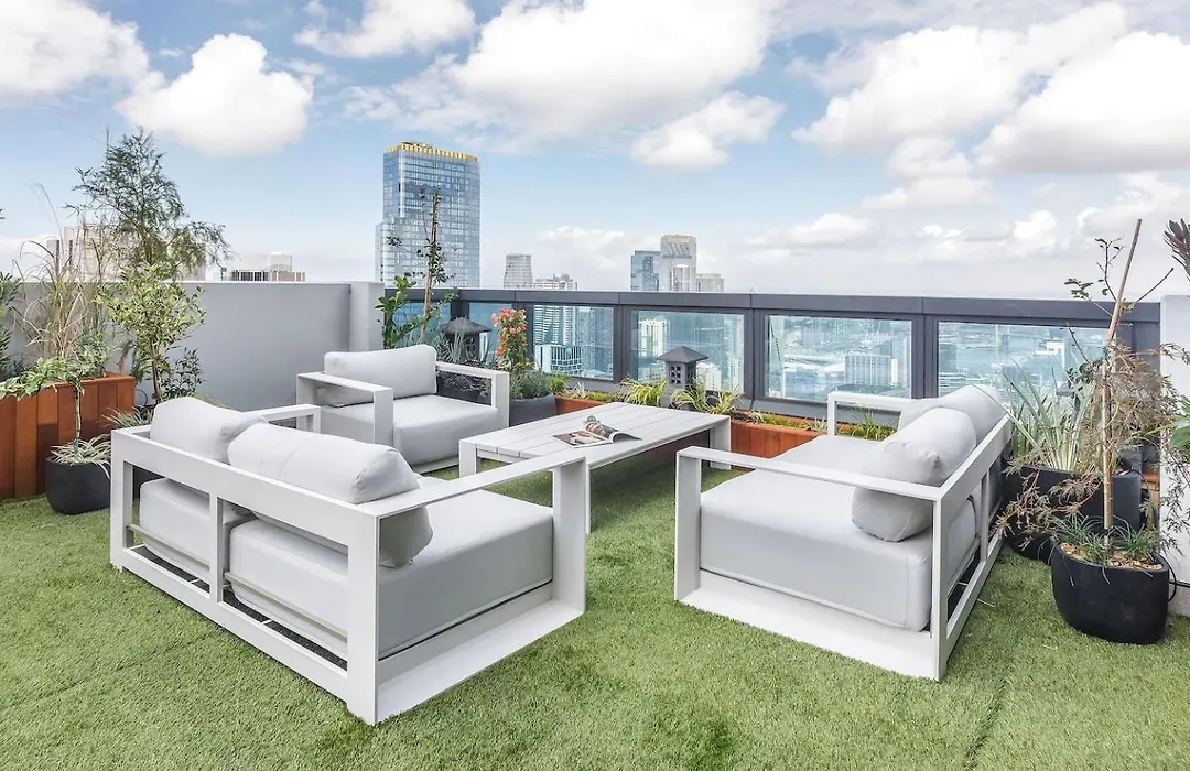 メルボルンの中心に位置するJade Pavilion - Design, Culture & City Views メルボルンアパートの総面積は58m² です。 このアパートにはプールと庭園の景色を見渡せるテラスが備わります。